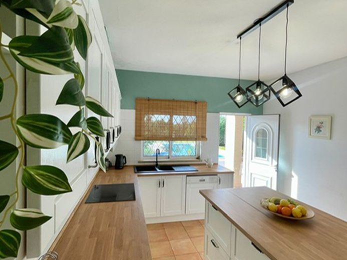 Dining Room = Dining table and chairs, dresser with all necessary glasses, fully equipped kitchen with dishwasher/fridge freezer/oven hob/microwave/table and chairs/coffee maker/toaster/kettle.