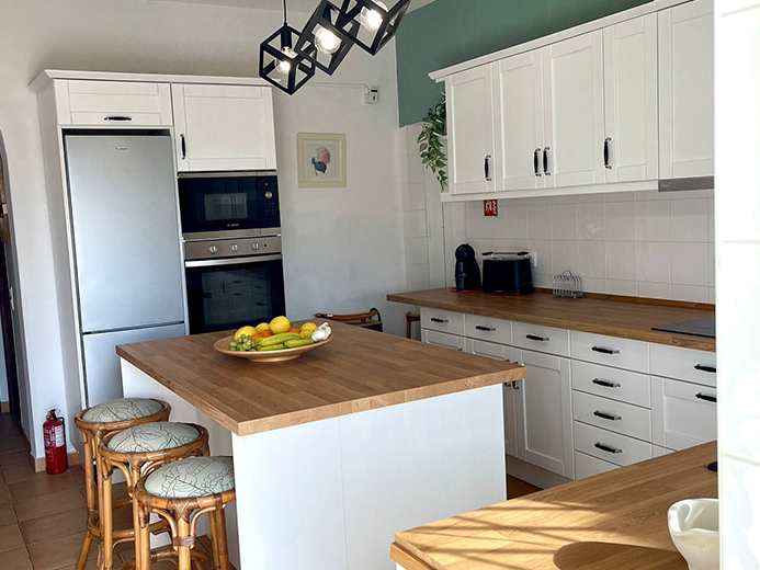 Large terrace (with fence to prevent children from gaining access to pool without supervision) table and 8 chairs for outside dining – awning , 8 sunbeds plus additional seating.